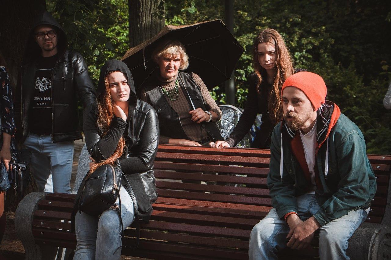 На этом мероприятии моей задачей было ознакомить за неделю только что собравшуюся группу с определенными формами актерского мастерства. Я им объяснил принципы, а дальше они сами придумали, что и как будет. Я их только обучил, рассказал, что можно делать на улице, а чего не стоит».